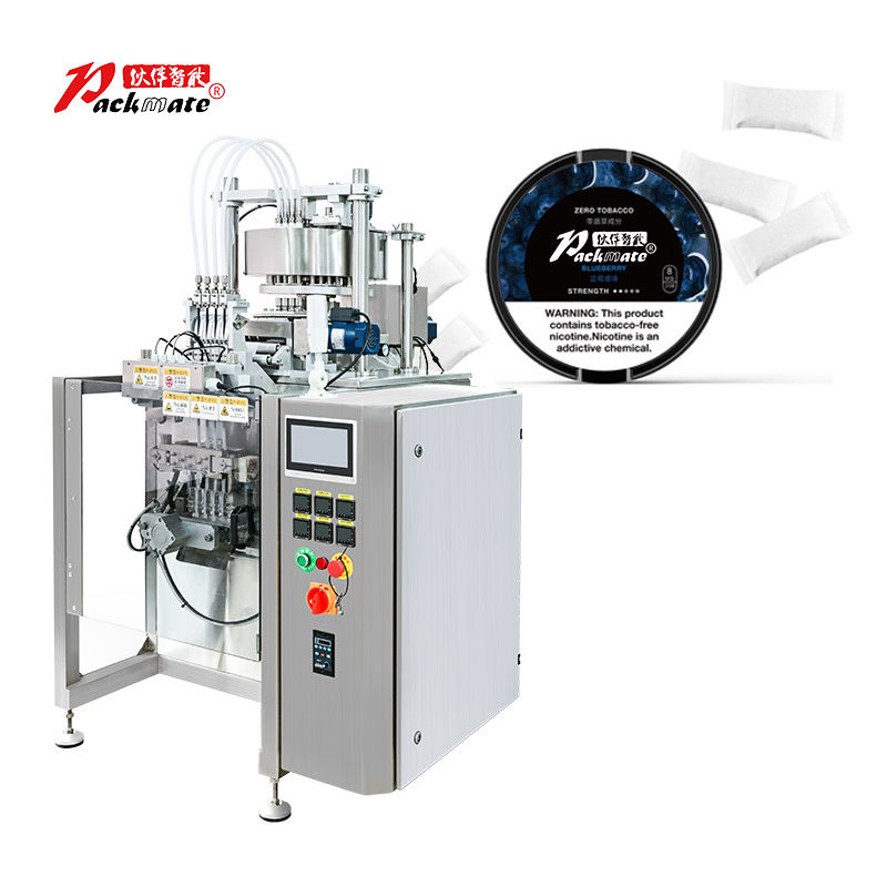 Solusi pengemasan canggih untuk tembakau kunyah, kantong snus basah, dan kaleng snus kering/basah dengan kompatibilitas multi-material.